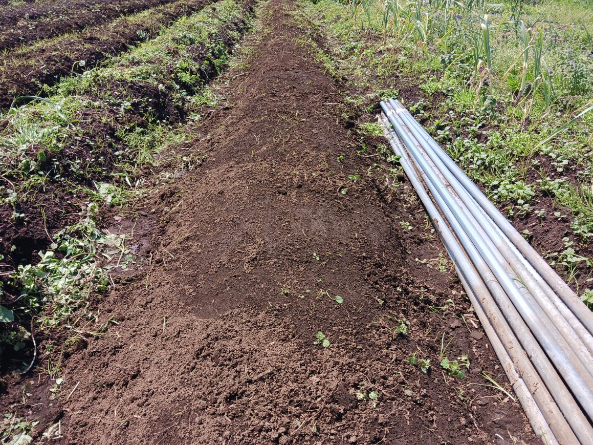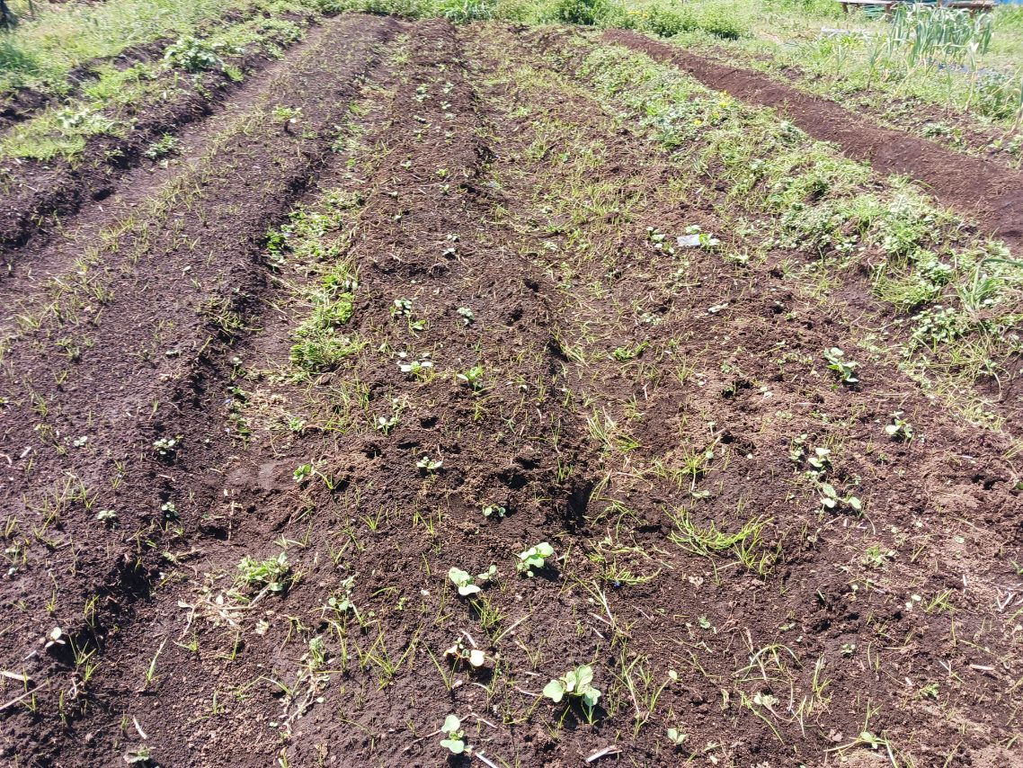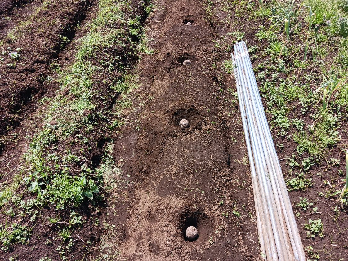 玉ねぎの列が、里芋6個で、ピッタリと埋まりました。