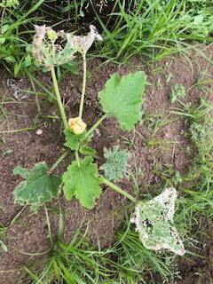 ズッキーニの葉はウリハムシという天敵に食べられてピンチ。