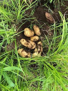 先週、一部を収穫したジャガイモは、葉が黄色く枯れた部分を掘り起こしました。