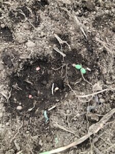 そして、狭く高めの畝には、大根、紅心大根、カブの種を蒔きました。