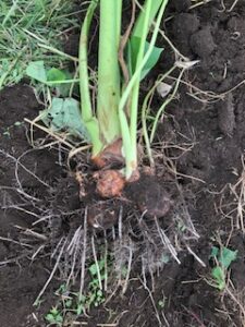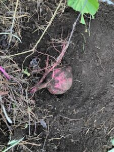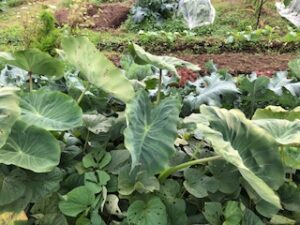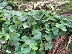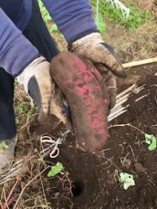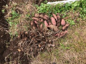 翌日は雨予報の中、本日はサツマイモ、里芋を収穫します。