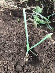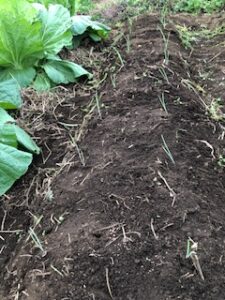 続いて、山形青菜を収穫した跡地に白タマネギ、赤タマネギ(湘南レッド)の植えつけを行います。