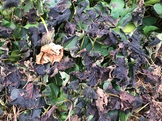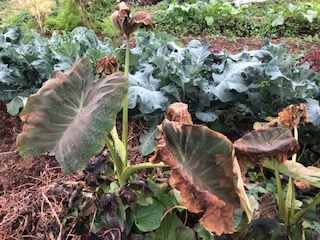 11月も下旬となり、初霜が降りたようです。里芋、サツマイモの葉が枯れています。