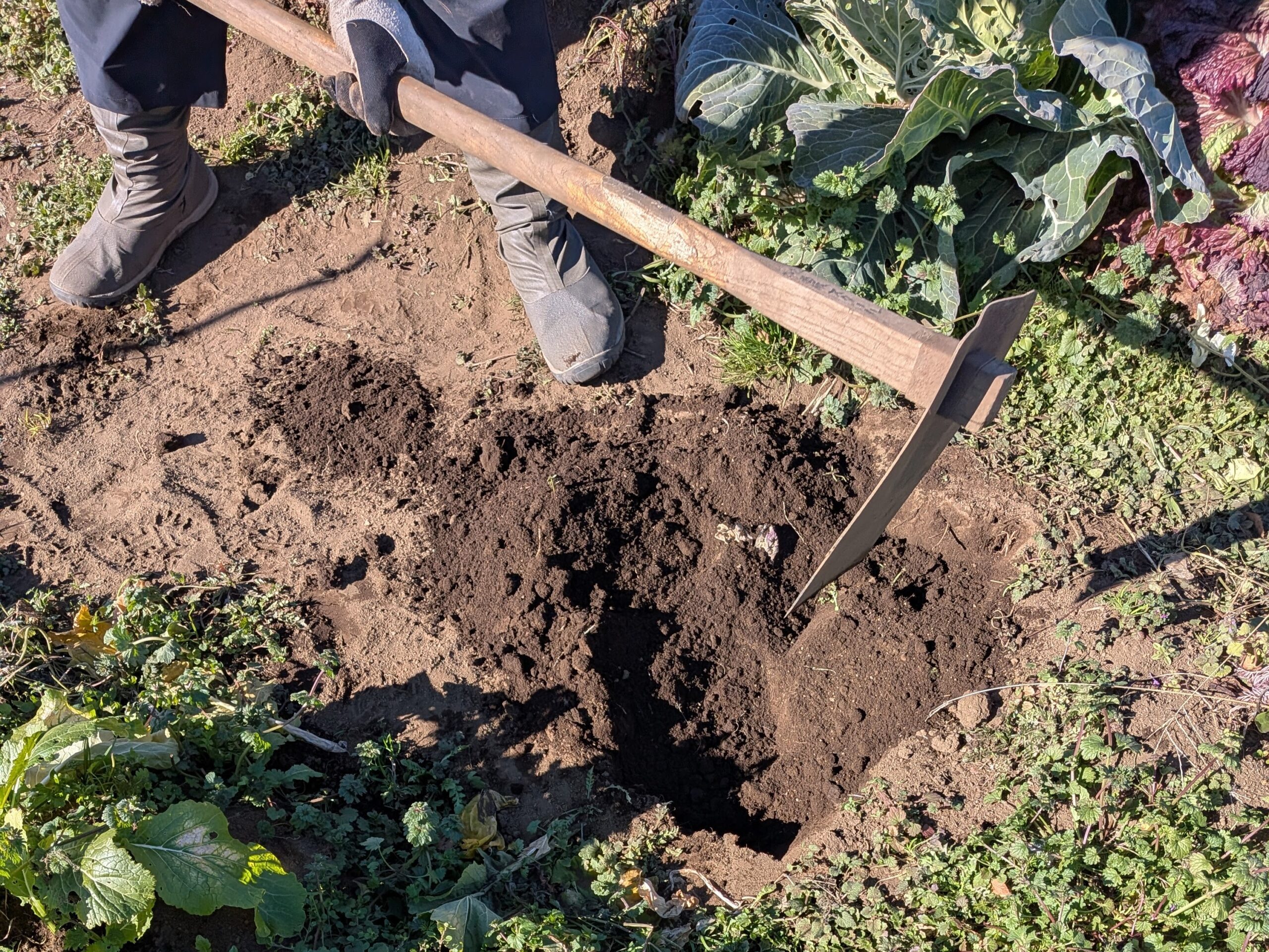 大根の土寄せと、空き地の天地返しを行って、年初の作業を終了しました。