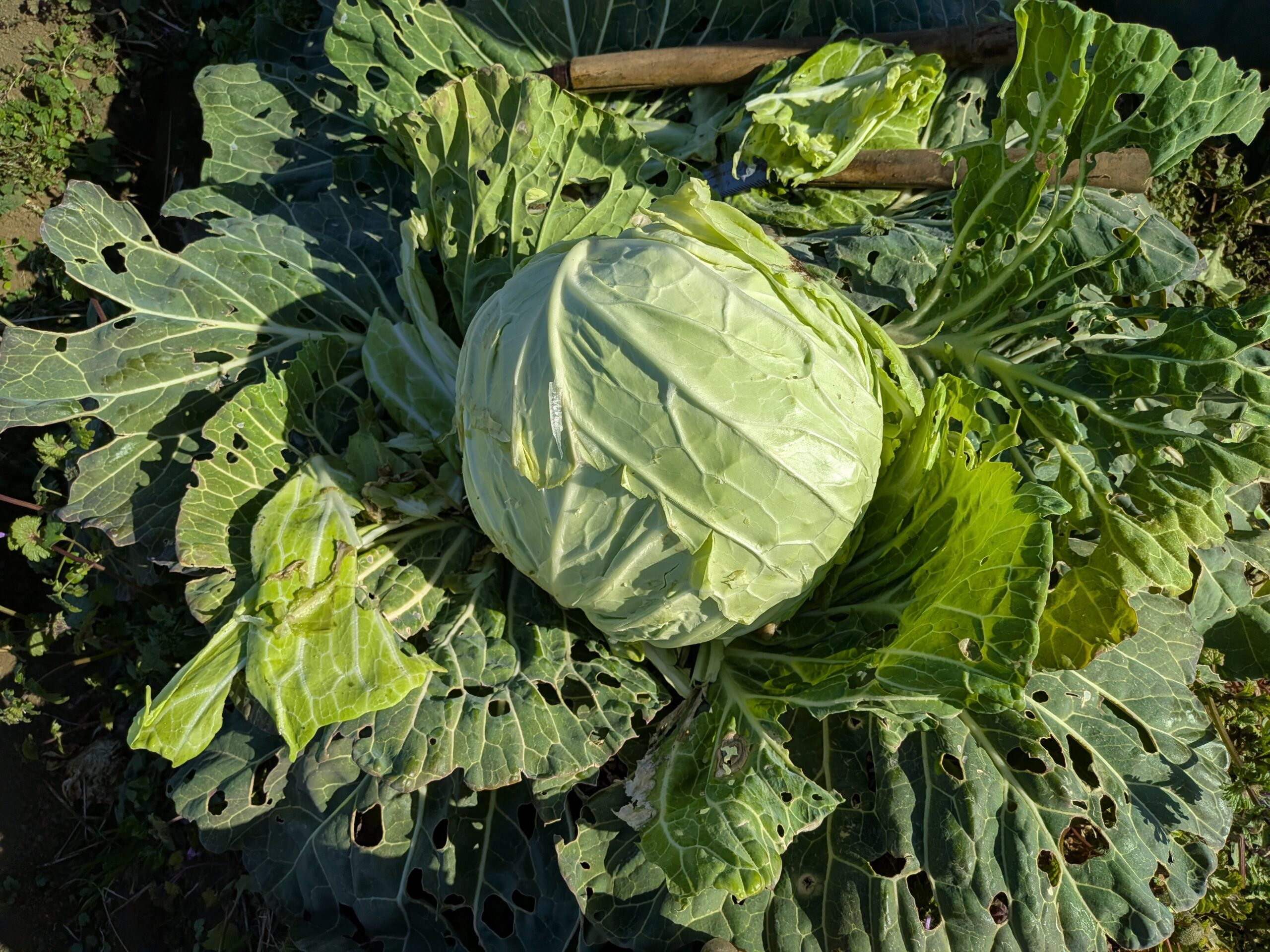 前回に引き続き、大きくなったブロッコリー、キャベツを収穫します。