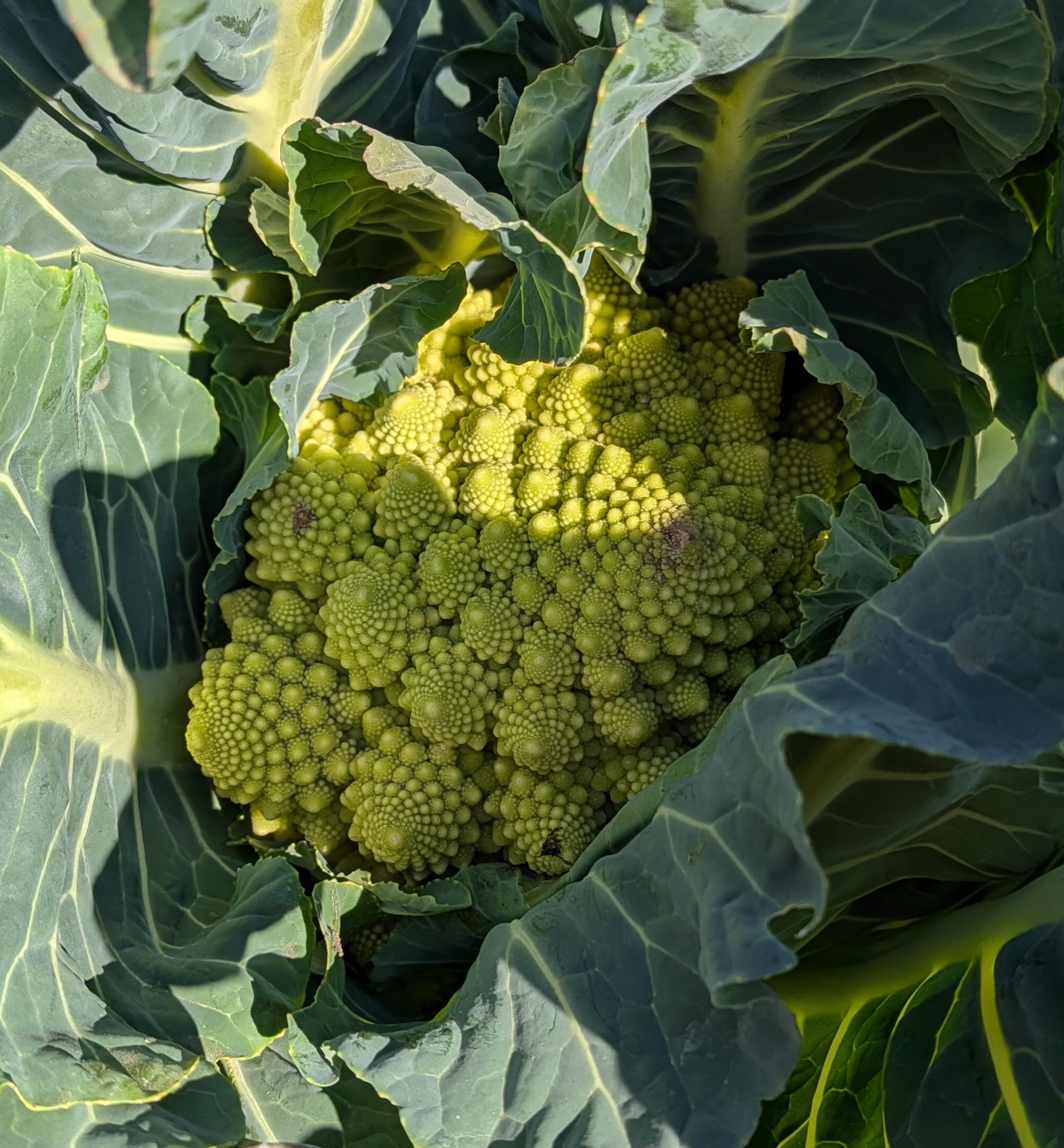 色鮮やかなロマネスコ。もう少し大きくなるのを待ちます。