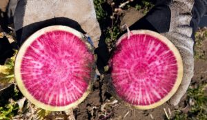 紅芯大根。その名の通り、鮮やかな赤色です。
