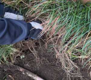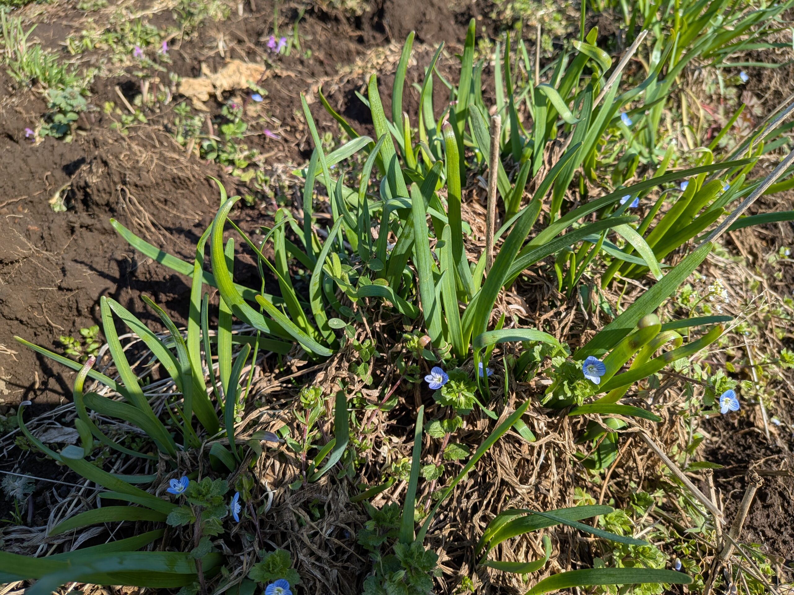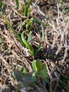 爽やかな好天に恵まれた3月初回の本日。まずは元の畑で、ニラが育っている様子を確認しました。