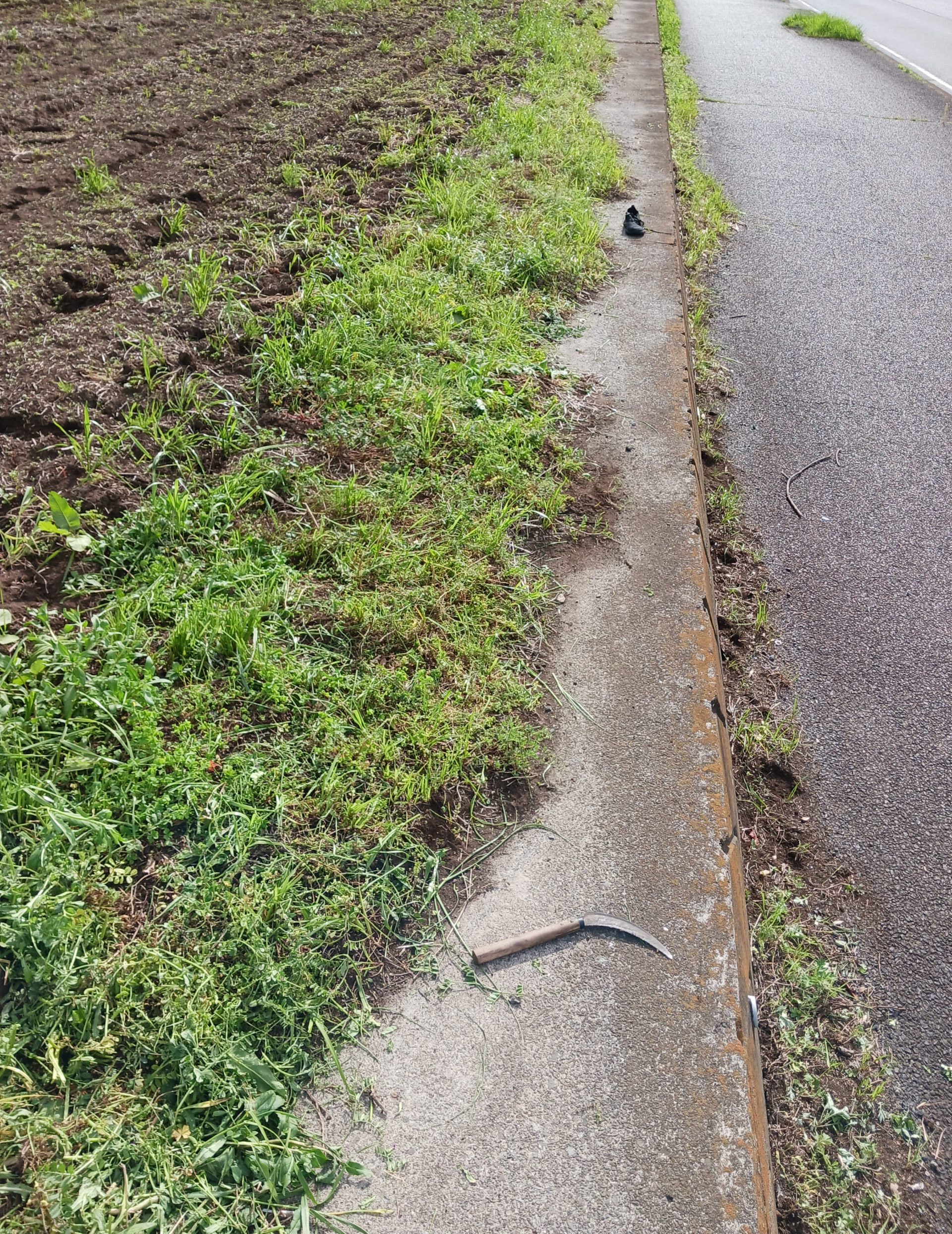 今日の作業は、雑草を鎌で刈ることから始めました。