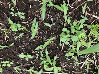 先日撒いたニンジンの種(赤茶色のが種)が発芽していなかったり(涙)、