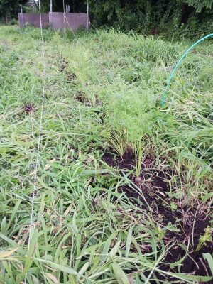 今日は、里芋と人参の周りの除草をしました。人参はひょっこり頭が出ています。笑