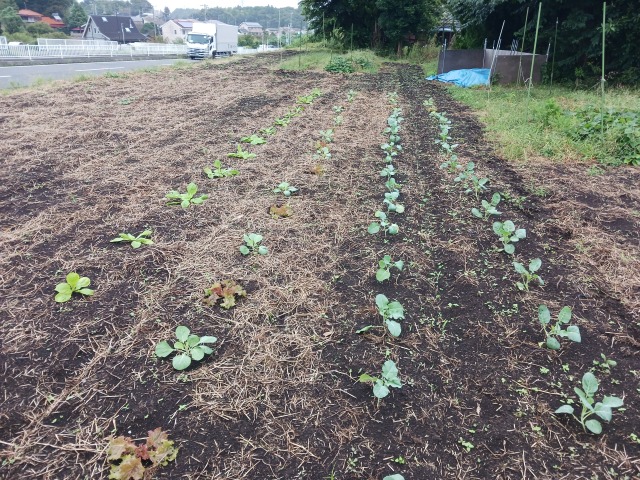 先日植えた、白菜、キャベツ、サニーレタス、ブロッコリー、ロマネスコの苗ですが、すくすくと成長しておりました。