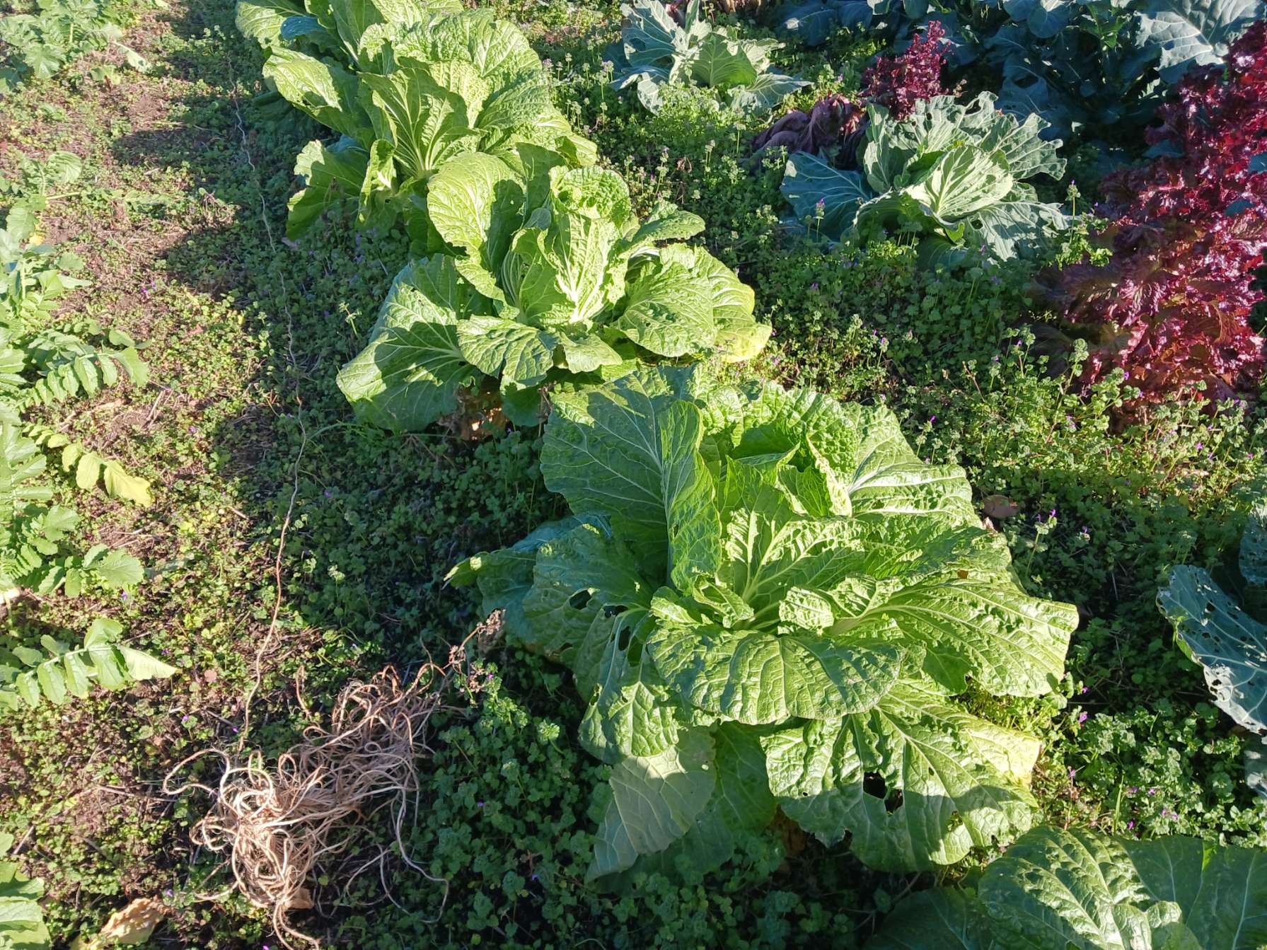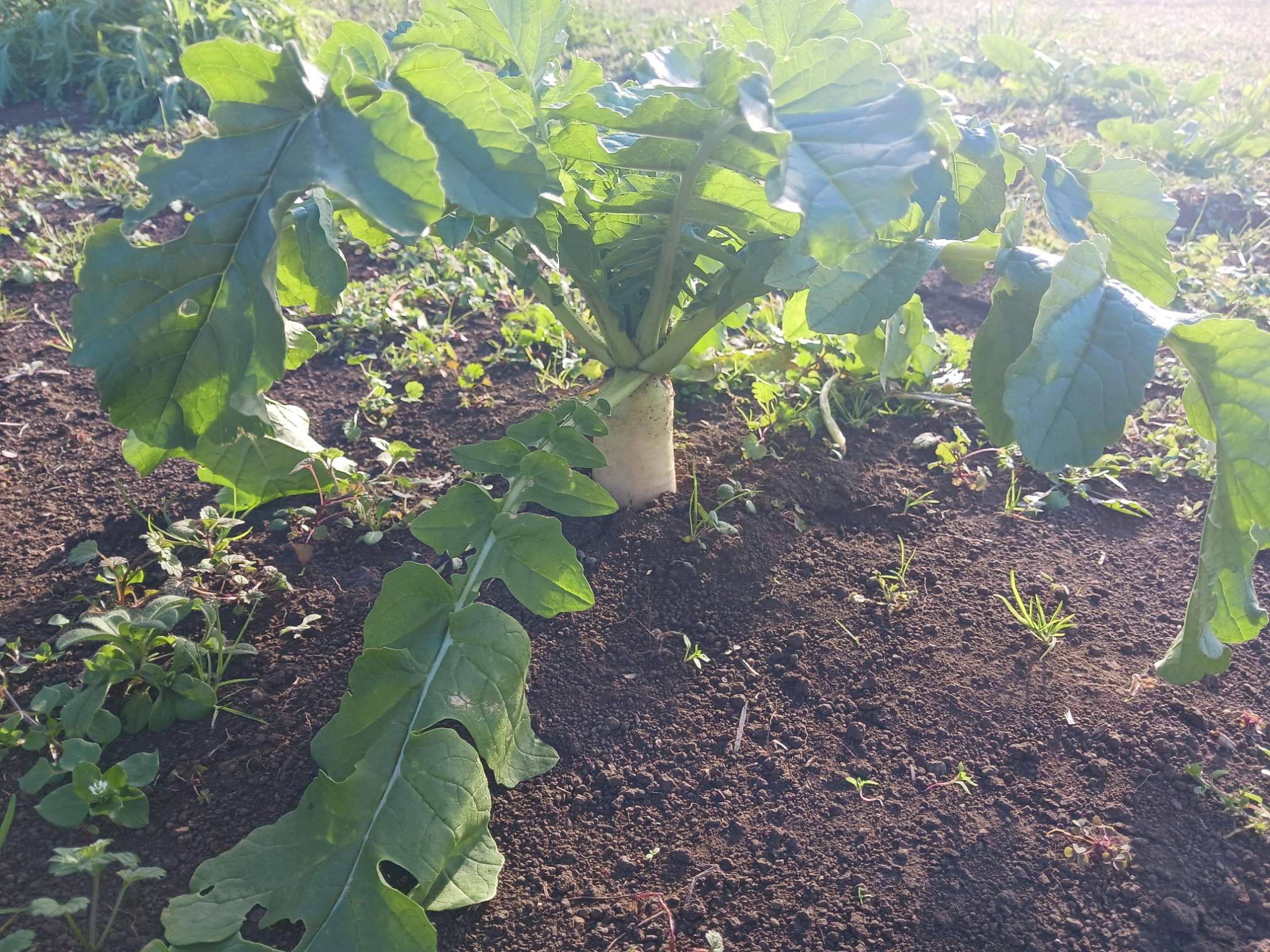 白菜やキャベツ、サニーレタスに加え、大根やカブも顔を出しています。