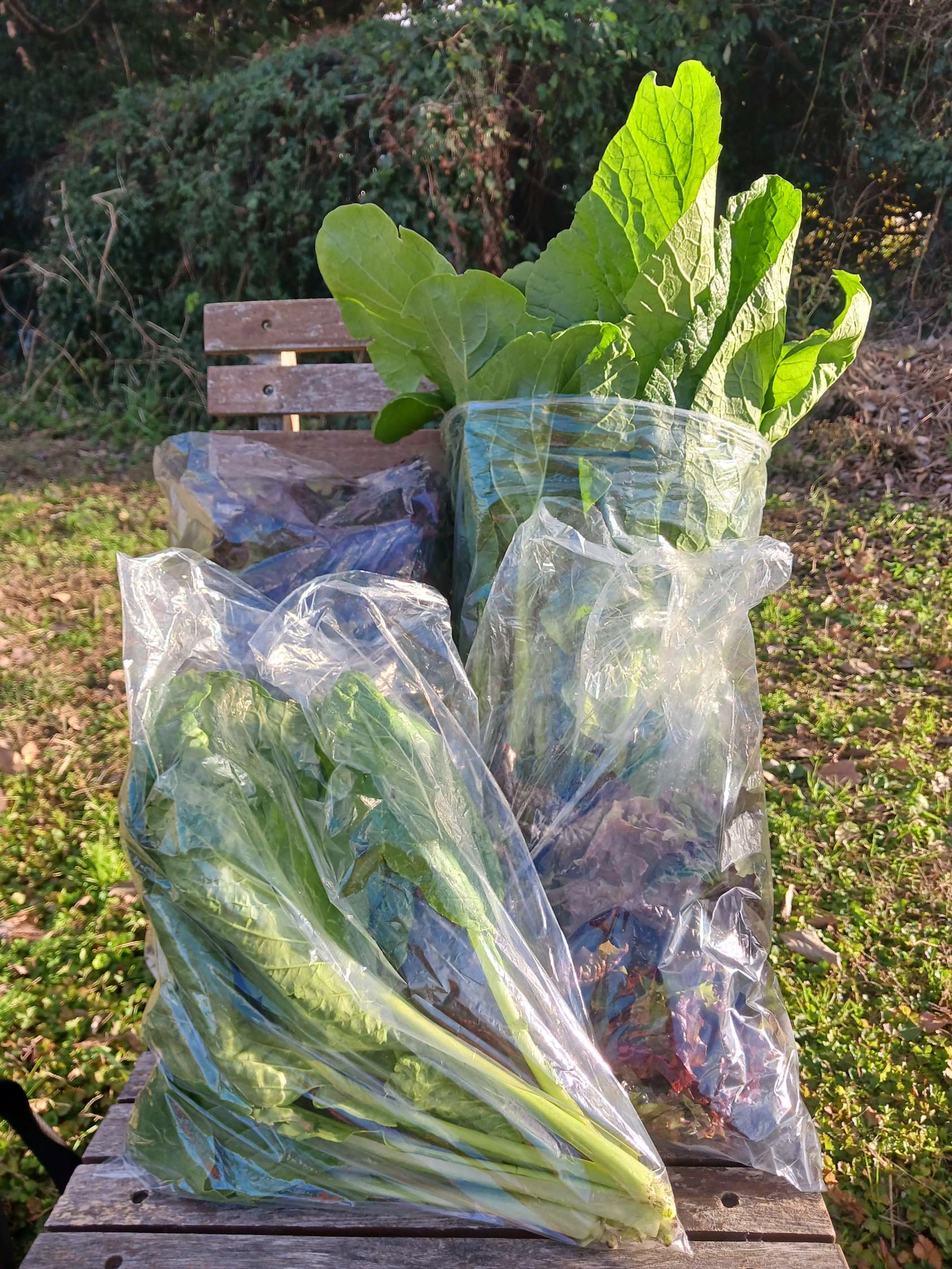 収穫後の小松菜、サニーレタス