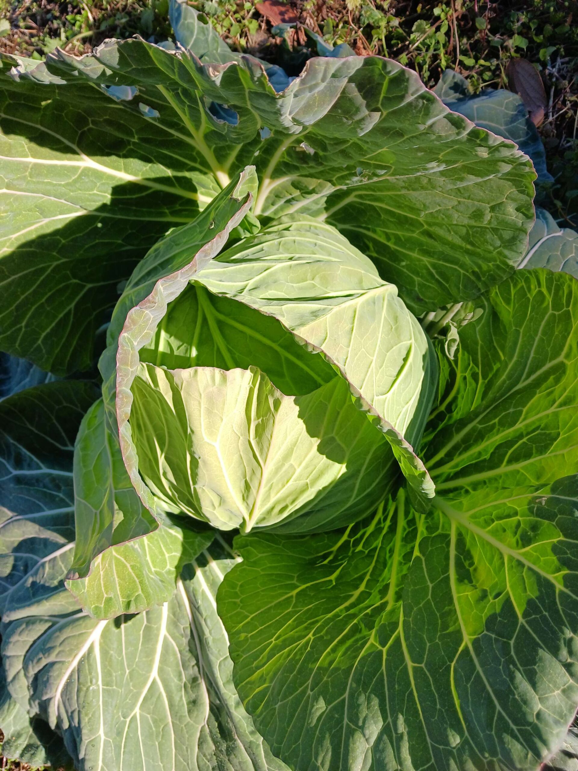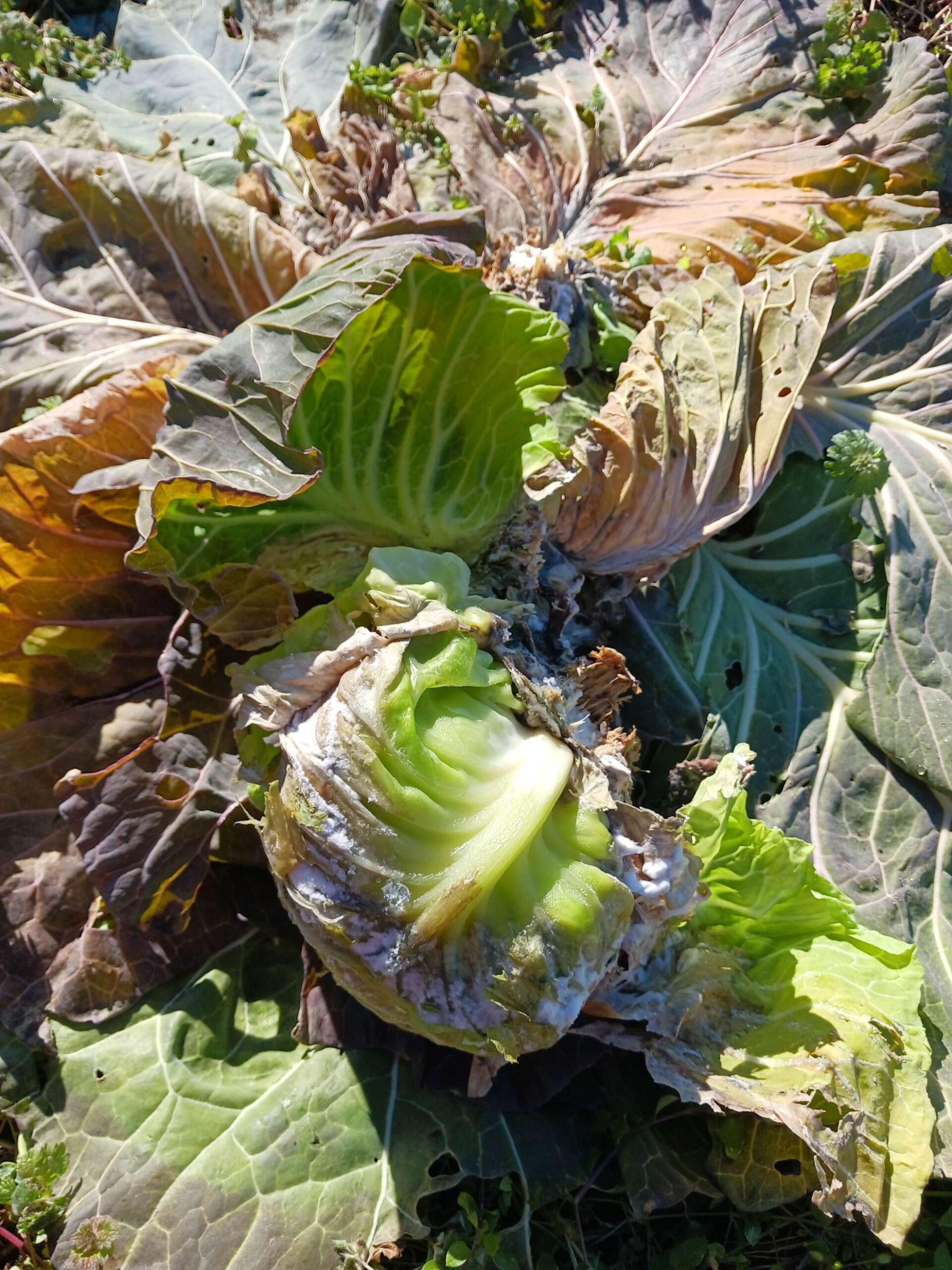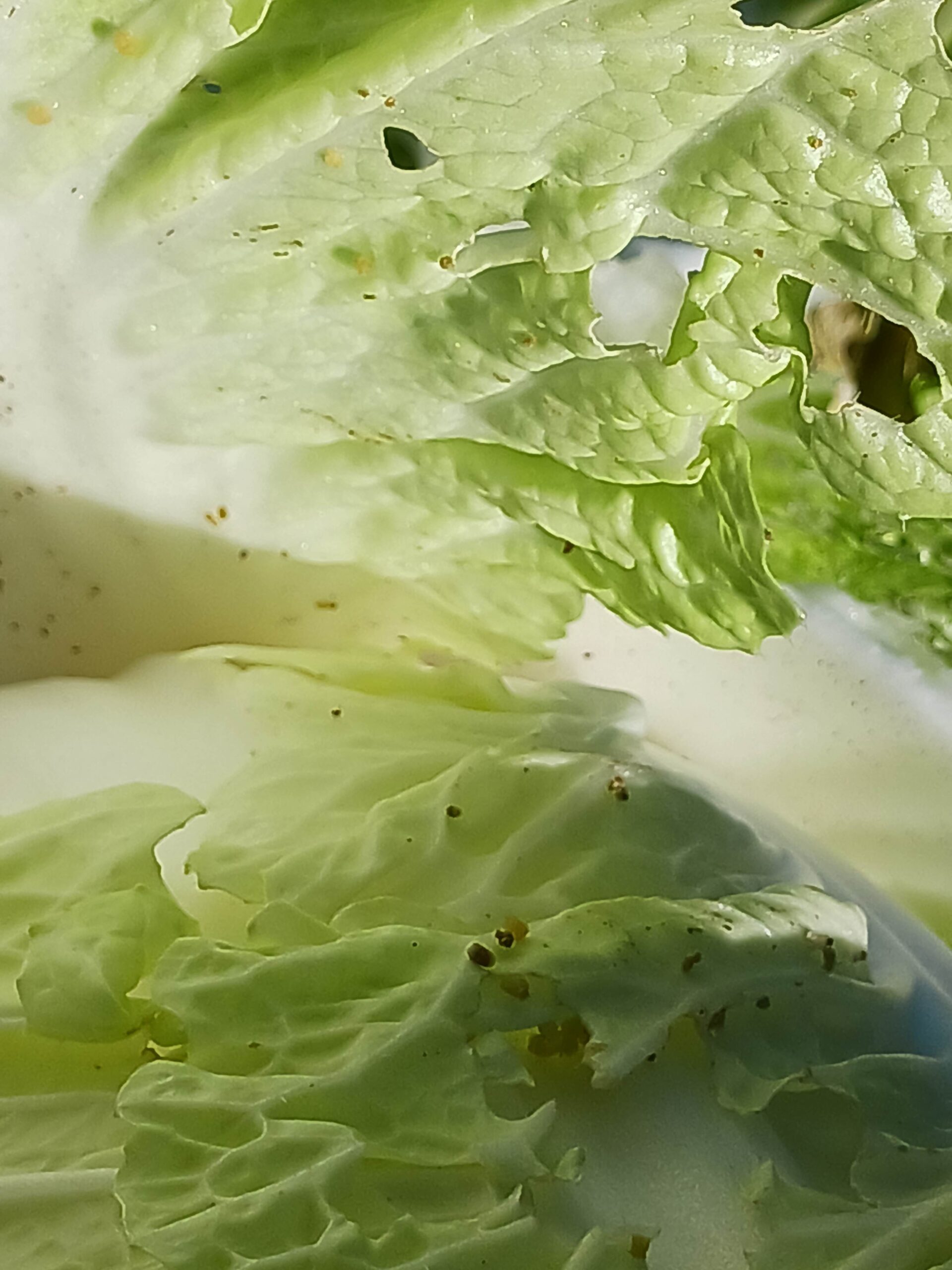 白菜は途中まで穴が空いており、虫が入っている様子。