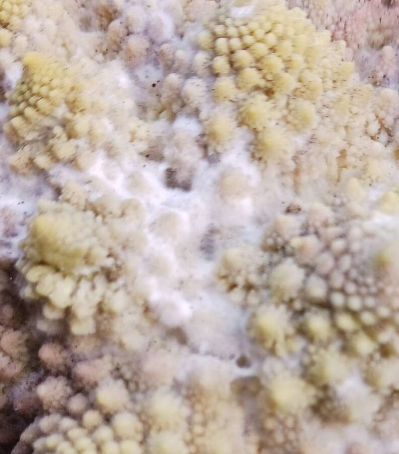 このロマネスコは寒さにやられて弱った後、白カビが繁殖したのかなと思いました。