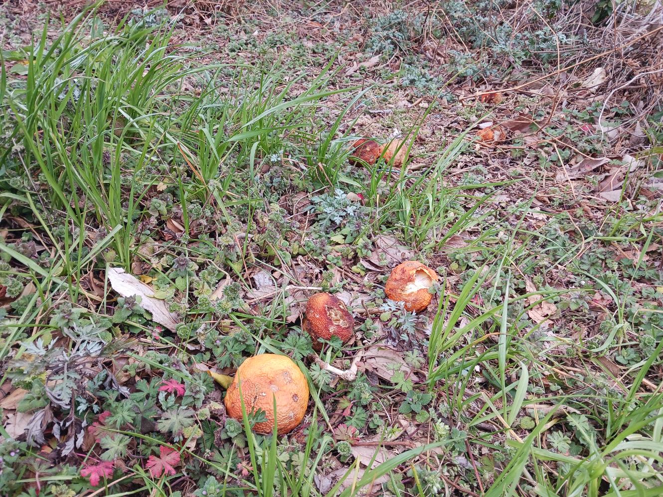 畑の周りでは、カラカラになったゆずが、木の周りに散らばっていました。