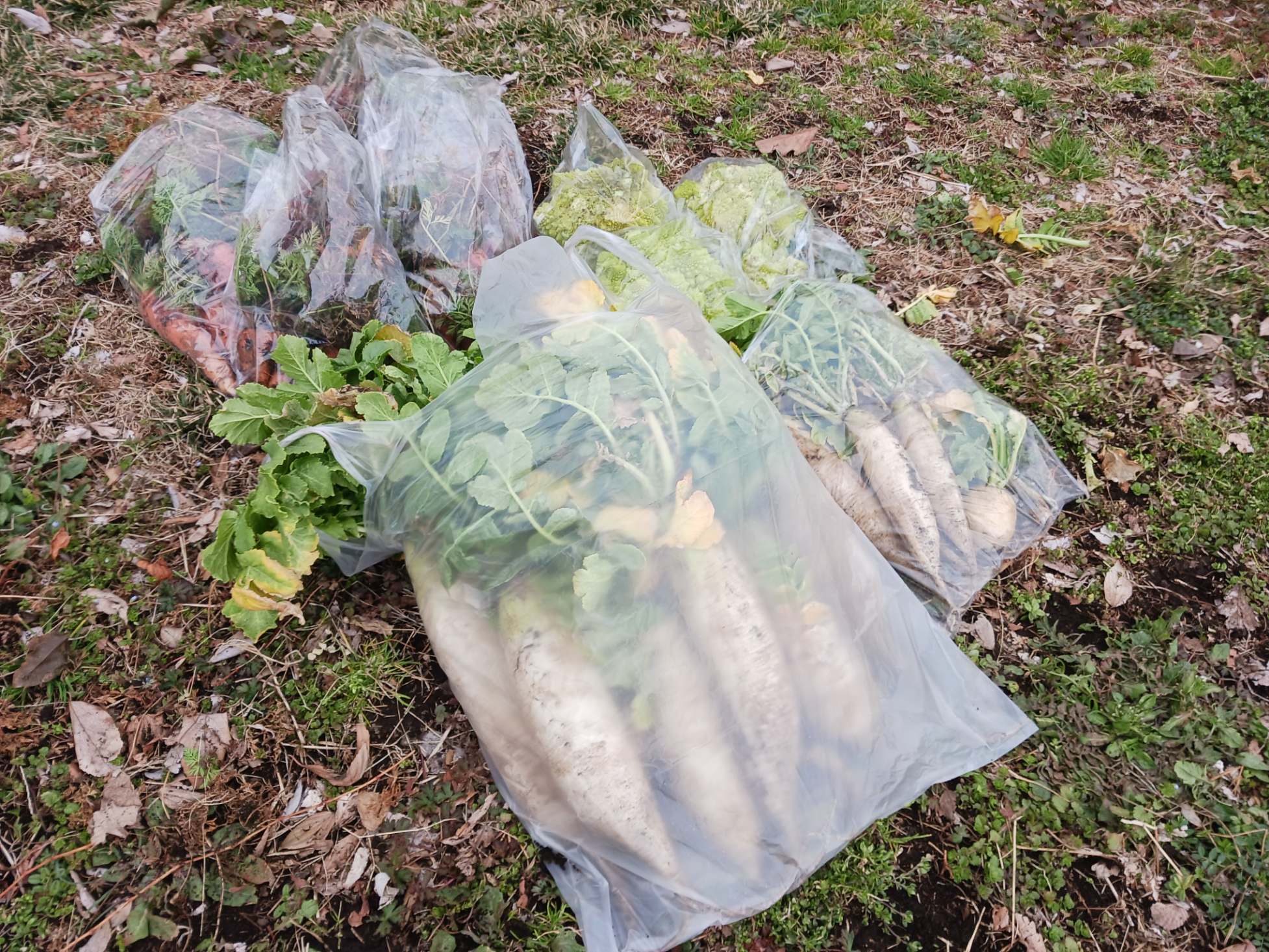 本日収穫した野菜は、ビニール袋に小分けして、ふじさわこども食堂・地域食堂ネットワークさんに寄贈します。