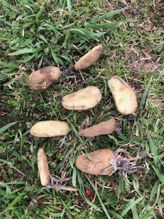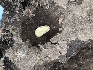 植え付けの前には、じゃがいもを半分に切り、切り口を乾かすことから始めました。